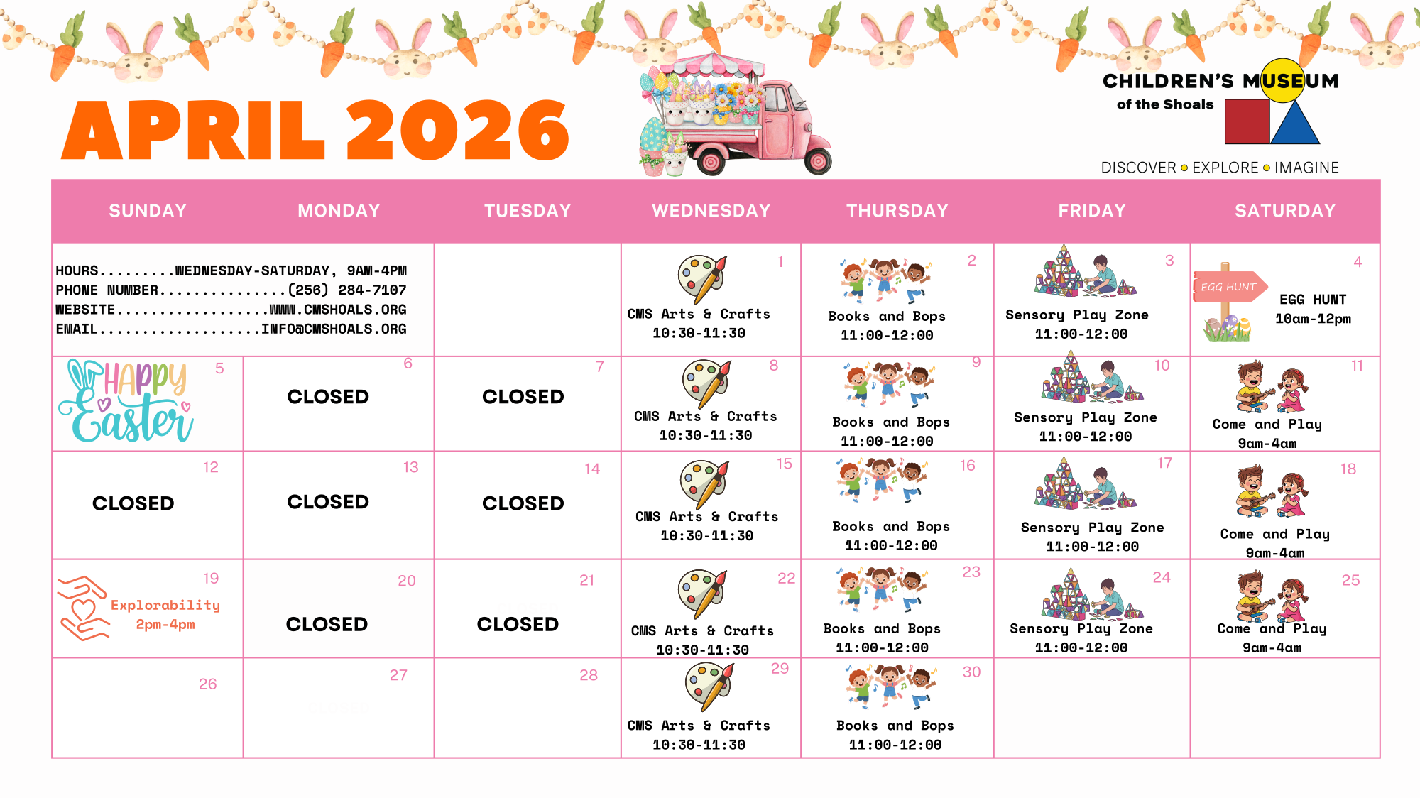 The Children’s Museum Shoals is the only museum in Northwest Alabama that provides children with a hands-on, interactive experience designed especially for them. The Children’s Museum Shoals’ venues and programs offer children the opportunity to explore, learn and create in a variety of attractions. Many of the venues are influenced and inspired by the wonderful history and heritage of the region.